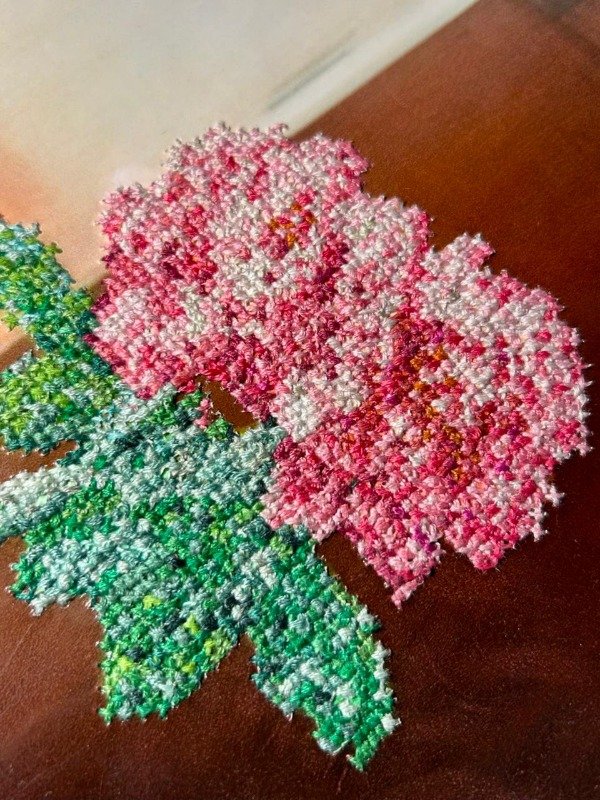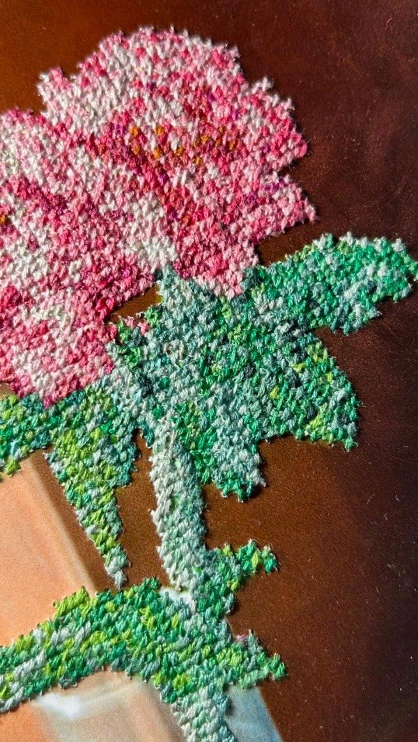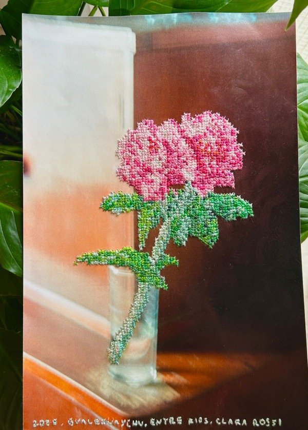 Fotografia analogica bordada a mano con la tecnica de punto cruz